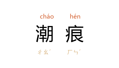 引唐 朱邺 《扶桑赋》:“山晴而瑞气初动,海晚而潮痕乍湿。”唐 李嘉祐 《仲夏江阴官舍寄裴明府》诗:“苔色侵衣桁,潮痕上井栏。”唐 任翻 《秋晚郊居》诗:“海山藏日影,江月落潮痕。”