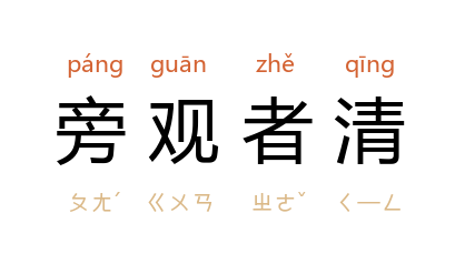 引《红楼梦·第五五回》:「俗语说:『旁观者清。』这几年姑娘冷眼看著,或有该添该减的去处二奶奶没行到,姑娘竟一添减。」