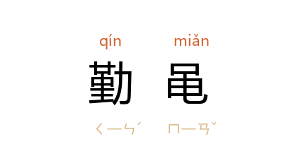 引明 李东阳 《周氏先墓表》:“为人谨畏勤黽,谦恭不伐。”《红楼梦》第一〇七回:“贾母 自然喜欢,拉着説了些勤黽报恩的话。”郭沫若 《归去来·希望不要下雨》:“的确有天主教的女士数人在勤黾地服务。”