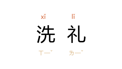 ⒈ 基督教及天主教的入教礼。各教派的洗礼仪式和礼仪不尽相同,有的将受洗者的全身或半身浸入水中,有的在受洗者的额上洒水或滴水。行礼时,施洗礼者必须口诵规定的礼文,并奉三位一体真神之名宣告:「我奉圣父、圣子和圣灵的名为你施洗。」