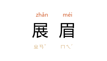 引唐 元稹 《三遣悲怀诗》之三:“唯将终夜长开眼,报答平生未展眉。”宋 叶适 《赠蒋知县》诗:“长官况自清如水,説与邦人共展眉。”陈毅 《大柳巷春游》诗:“旧歌不厌人含笑,抗战新声更展眉。”