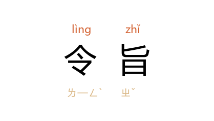 ⒉ 宋、元 时指太子的命令。《元代白话碑集录》载有1243年 鄠县 草堂寺 《阔端太子令旨碑》。