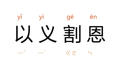 引《汉书·卷九七·外戚传下·孝成赵皇后传》:「恩之所不能已者,义之所割也」句下唐·颜师古·注:「言以义割恩也。」