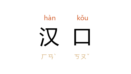 ⒈ 地名。湖北省武汉市,长江与汉水交汇处北岸的京广铁路线上,古称夏口。原属江夏县,地处水路交通枢纽,1949年与武昌、汉阳合并为武汉市。