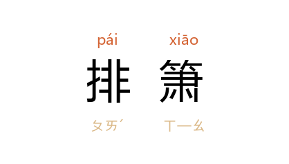 ⒈ 乐器名,由长短不同的竹管比连而成,故称为「排箫」。分为大小二种,大者二十三(或二十四)管,小者十六管。