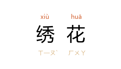 例如:「绣花丝巾」、「绣花鞋」。