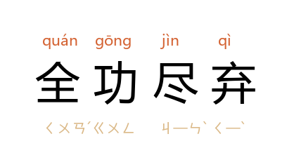 引清 林则徐 《扎苏藩司宝山海塘工程勿稍草率并委徐令督视》:“一经填砌碎石,必致斜压侧卧,潮来即被衝起,岂非全功尽弃!”毛泽东 《中国革命战争的战略问题》:“战争历史中有在连战皆捷之后吃了一个败仗以至全功尽弃的,有在吃了许多败仗之后打了一个胜仗因而开展了新局面的。”