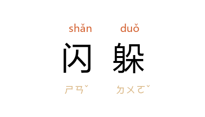 引《儿女英雄传》第十八回:“那马不是见了他先踶蹶咆哮的闪躲,便是吓得周身乱颤。”孙犁 《白洋淀纪事·看护》:“一个大姑娘来不及闪躲,就叫飞机上的鬼子,从窗口打死了。”