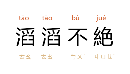 ⒈ 形容说话连续而不间断。也作「滔滔不竭」。
