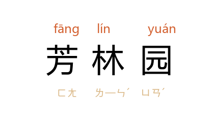 ⒉ 园名。(1)建于东汉,三国魏避齐王芳讳,改名华林园。故址在今河南故洛阳城中。《文选·张衡〈东京赋〉》:“濯龙芳林,九谷八溪。”李善注:“芳林,苑名。”《三国志·魏志·文帝纪》“﹝黄初四年﹞九月甲辰,行幸许昌宫”裴松之注引晋王沈《魏书》:“是冬,甘露降芳林园。”(2)宋太祖潜邸之园。故址在今河南开封城内东北。《清一统志·河南·开封府二》:“芳林园在府城内东北,宋太祖潜邸时园也。即位后,号曰潜龙,后改奉真。天圣七年,又改名芳林。”