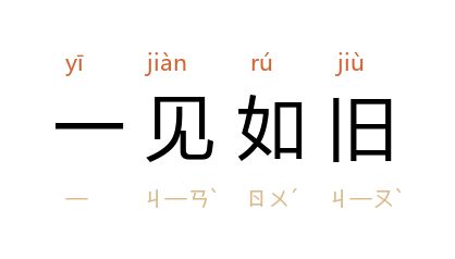 ⒈ 初次相见意气相投,有如故交。语本《左传·襄公二十九年》:“﹝吴·公子札﹞聘于郑,见子产,如旧相识。”亦作:一见如故。