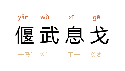 引《后汉书·公孙述传》:“嚣(隗嚣 )不及此时推危乘胜,以争天命,而退欲为 西伯 之事,尊师章句,宾友处士,偃武息戈,卑辞事 汉,喟然自以 文王 復出也。”亦作“偃武櫜兵”、“偃武休兵”。 《北史·高允传》:“偃武櫜兵,唯文是恤。”宋 岳飞 《乞解军务第三札子》:“今讲好已定,两宫天眷,不日可还;偃武休兵,可期岁月。”