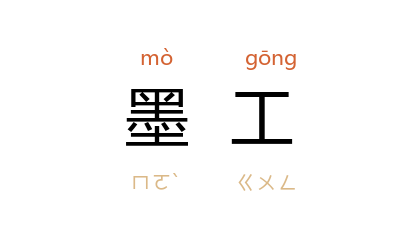 引宋 何薳 《春渚纪闻·都下墨工》:“崇寧 已来,都下墨工如 张孜、陈昱、关珪 ……皆有声称,而精於样製。”宋 赵彦卫 《云麓漫钞》卷十:“邇来墨工以水槽盛水,中列麄椀,然以桐油,上復覆以一椀,专人埽煤,和以牛胶揉成之,其法甚快,便谓之油烟。”明 陶宗仪 《辍耕录·墨》:“至 唐 末,墨工 奚超 与其子 廷珪,自 易水 渡 江,迁居 歙州,南唐 赐姓 李氏,廷珪 父子之墨,始集大成。”