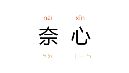 ⒈ 耐心。心里不急躁,不厌烦。奈,通“耐”。