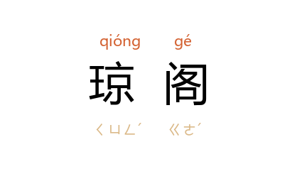 引南朝 梁 陶弘景 《水仙赋》:“层城瑶馆,縉云琼阁, 黄帝 所以觴百神也。”宋 梅尧臣 《游延羲阁后药栏》诗:“来游琼阁外,閒傍药栏初。”明 边贡 《赠尚子》诗:“陌头花絮夕纷纷,琼阁如天隔紫云。”毛泽东 《念奴娇·鸟儿问答》词:“借问君去何方?雀儿答道:有仙山琼阁。”