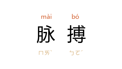 ⒈ 心脏收缩时,输出血液的冲击所引起的一种可用手指接触察觉的规律性动脉膨胀及收缩的搏动。也作「脉膊」。