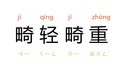 ⒈ 有时偏轻,有时偏重。形容偏颇不均衡。也作「畸重畸轻」。