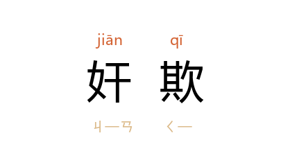 ⒈ 亦作“奸欺”。虚伪欺诈。