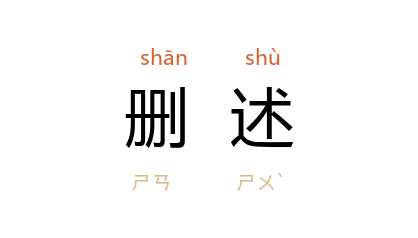 ⒈ 相传孔子序《书》删《诗》,又自称“述而不作”见《论语·述而》。后以“删述”谓著述。