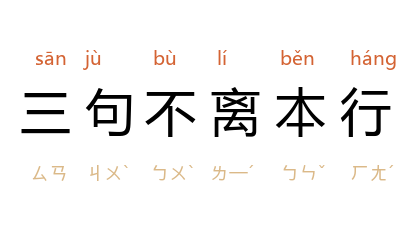 引《黄绣球·第一〇回》:「我是业医的,你们不要笑我三句不离本行。」《官场现形记·第三四回》:「每到一处,开口三句话不离本行,立刻从怀里掏出捐册来送给人看。」