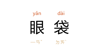 ⒈ 下眼皮因疲惫、哭泣、年老而呈现浮肿,称为「眼袋」。