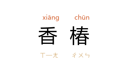 ⒈ 植物名。楝香科椿属,落叶乔木。羽状复叶,互生,花白色,蒴果长椭圆或倒卵形。嫩叶香甘可食,其木材可作器具。