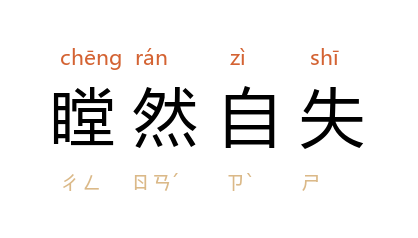 引《平山冷燕》第十一回:“不意到了 山东 汶上县,便遇了一个小才女,便令小弟瞠然自失,到了 松江 又遇见吾兄,又令小弟拜於下风。”郭沫若 《孔雀胆》附录《<孔雀胆>的润色》:“然而我现在却成为被人说是最爱用舞台效果的人,真是有点瞠然自失。”