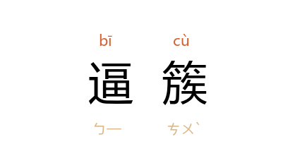 引明 徐弘祖 《徐霞客游记·粤西游日记三》:“涉溪而北,则其水乃自东而西者,不识西峯逼簇,从何峡而去之。”明 徐弘祖 《徐霞客游记·滇游日记八》:“西望则重崖层峡,其下逼簇,不知 澜沧 之流已嵌其底也。”