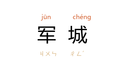 引唐 白居易 《浔阳宴别》诗:“鞍马军城外,笙歌祖帐间。”宋 孙光宪 《北梦琐言》卷二:“李琢 后镇是邦,用法太酷,军城远出,而属南蛮,六七年间,劳动兵役。”