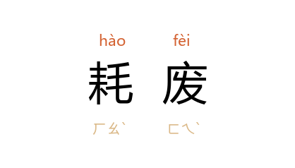 引《古今小说·滕大尹鬼断家私》:“善继 两个儿子,都好游荡,家业耗废。”《明史·宦官传一·郑和》:“﹝ 郑和 ﹞所取无名寳物,不可胜计,而中国耗废亦不貲。”郭沫若 《水平线下·湖心亭》:“平常我以为这些东西都是无意义的耗废,但我现在才晓得这到冬天来至少是可以供叫化子们取暖的。”
