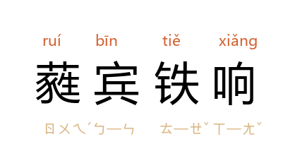后因以“蕤宾铁响”赞扬弹奏技艺的精妙超绝。 清 阎尔梅 《刘君因携琴见访醉后赠之》诗:“蕤宾铁响应黄鸝,紈扇轻摇唱《竹枝》。”