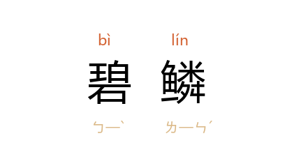 引南朝梁·沈约〈需雅〉:「碧鳞朱尾献嘉鲜,红毛绿翼坠轻翾。」
