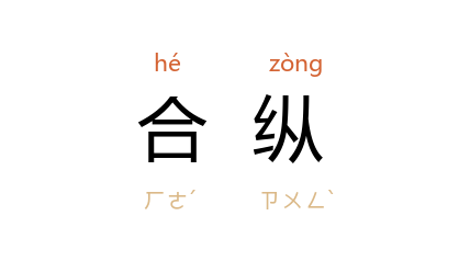 ⒈ 又写作“合从”。战国时苏秦游说六国诸侯实行纵向联合与秦国对抗的政策。南北为纵,东西为横。参见“连横”条。