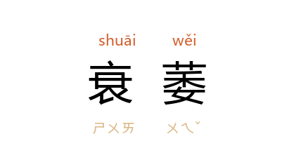 引骆宾基 《庄户人家的孩子》一:“榛树丛,狼尾草,猫爪子什么似的,也全都衰萎了。”杨沫 《青春之歌》第一部第十三章:“道静 坐在凳子上,突然像霜打了的庄稼软软地衰萎下来。”