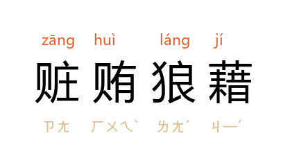 引《陈书·蔡景历传》:“天嘉 之世,赃贿狼藉,圣恩録用,许以更鸣,裂壤崇阶,不远斯復。”亦作“赃贿狼籍”。 《资治通鉴·唐中宗景龙三年》:“中书侍郎兼知吏部侍郎同平章事 崔湜 、吏部侍郎同平章事 郑愔 俱掌銓衡,倾附势要,赃贿狼籍,数外留人,授拟不足,逆用三年闕,选法大坏。”