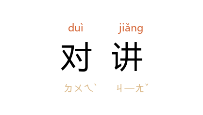 引《后汉书·卷二五·刘宽传》:「每行县止息亭传,辄引学官祭酒及处士诸生执经对讲。」《红楼梦·第五六回》:「叫了人家来,不说正事,你们且对讲学问。」