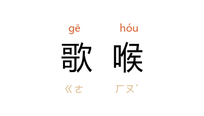⒈ 唱歌的嗓子,也指唱歌的声音。