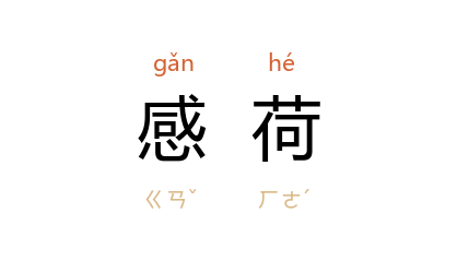 引南朝 宋 鲍照 《拜侍郎上疏》:“祇奉恩命,忧愧增灼,不胜感荷屏营之情。”唐 卢仝 《月蚀诗》:“再得见天眼,感荷天地力。”明 方孝孺 《与邵真斋书》之四:“远貽药物,感荷厚意,曷日而忘。”鲁迅 《书信集·致许寿裳》:“乔峰 事蒙如此郑重保证,不胜感荷。”