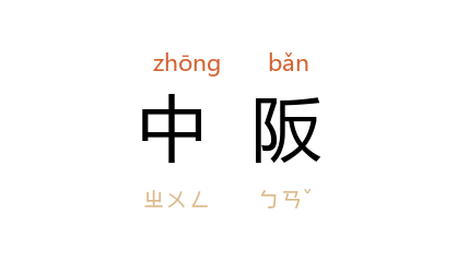 引《文选·宋玉<高唐赋>》:“中阪遥望,玄木冬荣。”李善 注:“中阪之中,犹未至山顶。”《史记·封禅书》:“始皇 之上 泰山,中阪遇暴风雨,休於大树下,。”汉 王褒 《九怀·株昭》:“驥垂两耳兮,中坂蹉跎。”