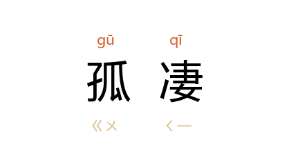 ⒈ 亦作“孤凄”。孤单凄凉。见“孤悽”。