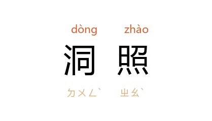 引晋 袁宏 《三国名臣序赞》:“英英 文 若,灵鉴洞照,应变知微,探賾赏要。”《旧唐书·李德裕传》:“陛下至圣至明,细微洞照。”姚雪垠 《李自成》第一卷第二九章:“张大经 赶快说:‘ 敬轩将军 所言学生苦衷,洞照肺腑。’”