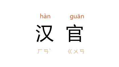 引《元史·祭祀志五》:“集贤院奏遣 汉 官,翰林院奏遣 蒙古 官,出璽书给驛以行。”范文澜 蔡美彪 等《中国通史》第四编第四章第一节:“在这样不同的经济关系基础上, 夏国 建立起所谓‘蕃官’与‘ 汉 官’两套并行的政治制度。”