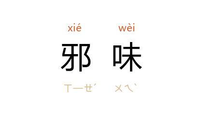 引康濯 《水滴石穿》第二章:“高皮帽和大皮领更把他的神情衬得带着一股什么邪味儿。”