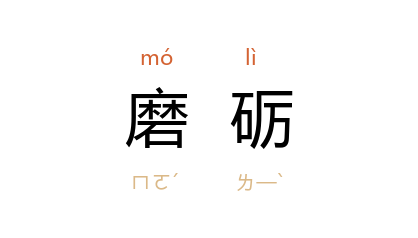⒉ 亦作“磨厉”、“磨励”。磨练。