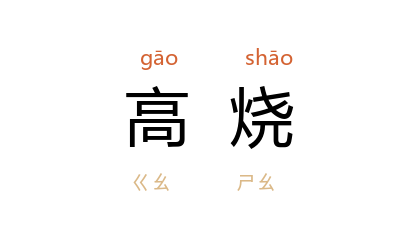 ⒈ 指体温在摄氏三十九度以上。也叫高热。