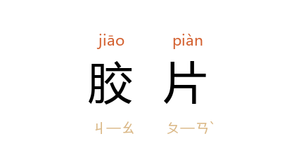 ⒈ 又称软片。涂有感光药膜的塑料片,用于摄影。