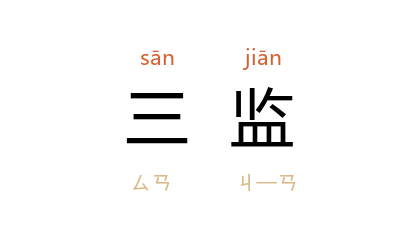 ⒈ 周武王灭商后,以商旧都封给纣子武庚,并以殷都以东为卫,由武王弟管叔监之;殷都以西为墉,由武王弟蔡叔监之;殷都以北为邶,由武王弟霍叔监之;总称三监。见汉郑玄《诗·邶墉卫谱》。一说指武庚、管叔、蔡叔。见《汉书·地理志下》、清王引之《经义述闻·三监》。汉代儒家依托周初三监的事,把三监作为周朝的通制。