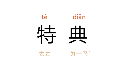 引明 单本 《蕉帕记·相逢》:“圣旨到齐来跪听,这特典中间,又赐令郎勑命。”郭沫若 《我的童年》第二篇四:“因为城厢附近的人三天的节假可以回家……离城过远的人占不着这种便宜,所以才给了那种特典。”