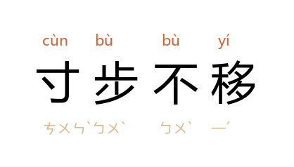 ⒈ 寸步:形容距离非常短。连寸步也不移动。指严守原地。