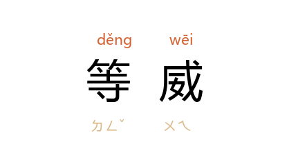 引《左传·文公十五年》:“伐鼓于朝,以昭事神,训民事君,示有等威,古之道也。”杜预 注:“等威,威仪之等差。”晋 葛洪 《抱朴子·仁明》:“服牛马以息负步,序等威以镇祸乱。”宋 叶适 《纪年备遗序》:“凡民人家国之用,制度等威之异,皆为説以处之。”《清史稿·圣祖纪一》:“帝王致治,在维持风化,辨别等威。”